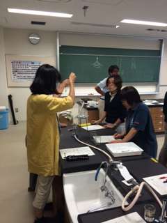 船橋希望中学の先生が講師になって理科の実験です。