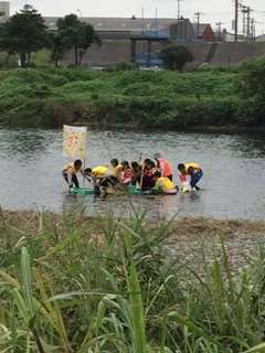 3つのイカダはみんな頑張っていました。見事揃ってゴールイン!