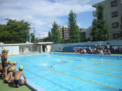 6年間の水泳の集大成がこの水泳記録会です。目標は自分に克つこと。自己ベストを出せるようにどの児童も全力を尽くし、友だちを全力で応援しました!