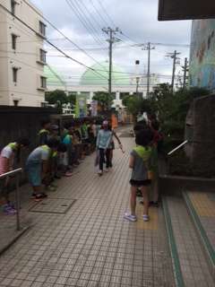 今朝は3年1組さんがあいさつキャンペーンの当番です。5ブロックのネッカチーフをつけて「おはようございまーす」と元気にみんなを迎えてくれました。