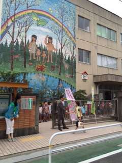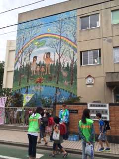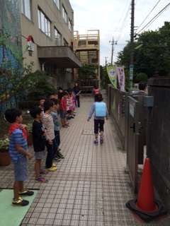 今朝は2-1のみんなが当番です。子ども安全ボランティアのメンバーと船橋希望中学校の保護者の皆さんと一緒に元気いっぱい『おはようございます』