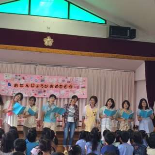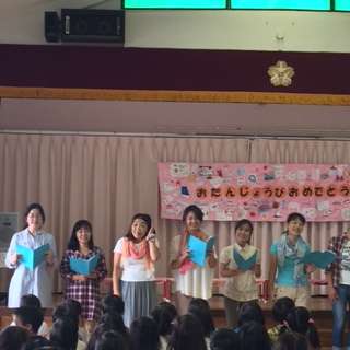 今日はめばえコーラスさんは塚戸幼稚園のお誕生日会にゲストでお呼ばれでした。可愛い幼稚園児に歌のプレゼント。幼稚園のみんなは大喜びです。