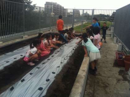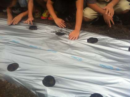 種の観察をしたあと、聖護院大根の種蒔きをしました。一つ穴に種を3つ、三角形に埋めます。優しい土をかぶせて完了です。どんな大根ができるか楽しみにですね。