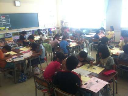 遠足の準備をしました。まずは、しおりにメンバーの名前書きです。自分たちの分と一年生の分。とくに、一年生の分は、名前を間違えないようにして、ひらがなで丁寧に書いていました。一年生の名前を覚えようと、何度もつぶやいている子や「もう名前覚えたよ!」と元気に教えてくれる子など様々でしたが、みんなお兄さんお姉さんとして頑張ろうという気持ちが
