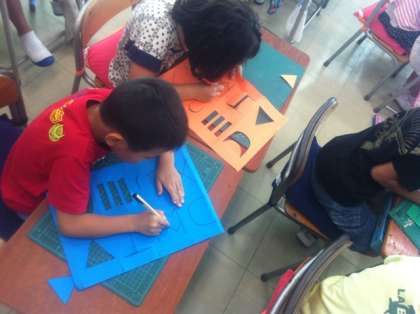 学校公開期間から、図工でカッターの使い方を学びました。刃の出し方や持ち方、押さえる手の位置、カッターの渡し方など、丁寧に説明して、直線や曲線の練習をして本番に臨みました。子供達も怪我をしないようにすることを一番に考え、真剣に取り組んでいました。大人は簡単に扱えるカッターも、刃の角度やカッターの持ち方が少し違うだけで上手く切れず、難しさも感じました。公開中は、たくさんの保護者の方にもお手伝いいただきまして、本当にありがとうございました。安心して取り組ますことができました。このあとは、切った画用紙を筒にして、中に絵を入れてマンションのようにします。出来上がりを楽しみにしていてください。