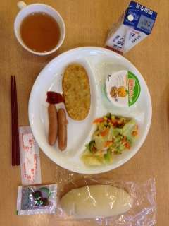 朝食です。今朝はパンです。これを食べたら、もう中野ビレジともお別れ。少しさびしい?早く帰りたい?