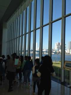 ガスの科学館「がすてなーに」に着きました。建物も立派ですが、天気にも恵まれて豊洲のロケーションの美しさも本当に素晴らしいです。これから見学が始まります。