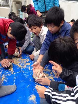 勢いよく飛ぶお米にみんな楽しそうでした!
