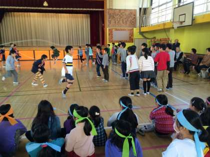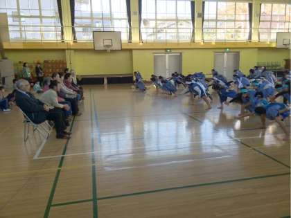 11月27日、廻寿会のみなさんとの交流会を行いました。4年からの出し物では、大縄八の字、学芸会の歌、南中ソーランをやりました。