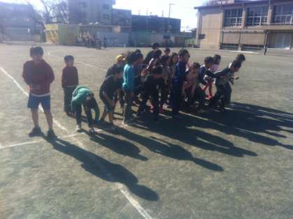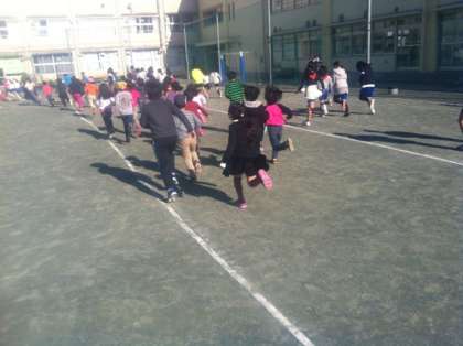今日から中休みのマラソンが始まりました。スタート前も気合いが十分。屈伸をして準備運動もバッチリでした。2年生は、5分間で速い子なら9周半走りました。自分のペースで歩かずに5分間走り切って、体力と気力を高めてもらいたいです。