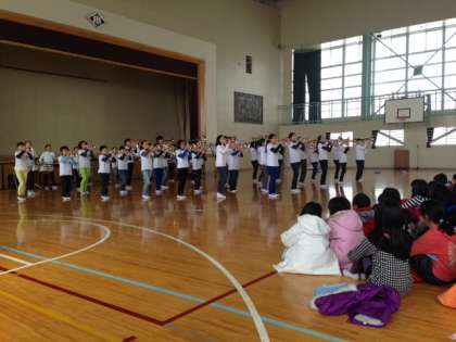 いよいよ閉校式となりました。校旗を交わして、両校の校歌を歌いました。児童代表挨拶もとても立派でした。そして、なによりも素晴らしかったのは、川場小学校金管バンドのステージでした。さすがは全国大会に出場しているレベル。見事な演奏だけでなく一糸乱れぬマーチング。学校規模は千歳台小の3分の1以下でも、その力量は圧巻でした。きっと千歳台小の子供たちも、多くを学んだことと思います。