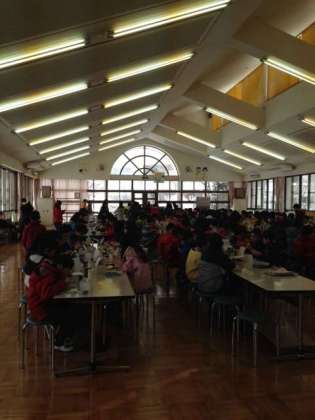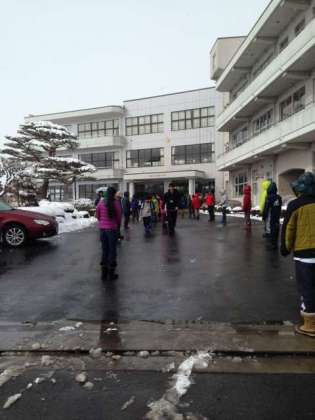校舎内にある広い食堂で昼食をとり、いよいよ川場小学校の子供たちとお別れです。廊下から玄関、そして駐車場まで川場小学校の子供たちと先生方全員がお見送りしてくださいました。雪の舞う中、心に残る最後でした。