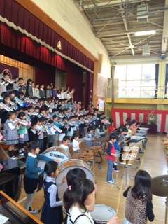 2年生が素晴らしい合唱と合奏で、お出迎え。