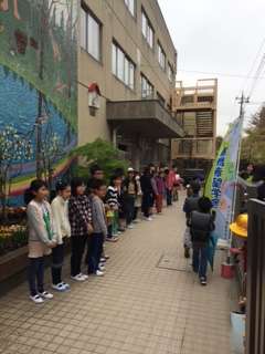 船橋希望中学校から先輩も駆けつけてくれて、元気にあいさつ??