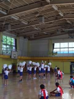 今朝は応援団の朝練の様子をご披露します。応援団は運動会の華。毎朝、一生懸命練習しています。
