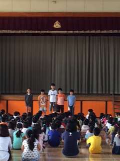 それは、川場小学校との交流と6年生の全校朝会でのスピーチです。700人の前でスピーチをするのは、とっても勇気がいりますよね。千歳台小の6年生はみんなそれを経験します。凄い6年生です。