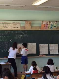今日は3年3組の算数の授業におじゃましました。どうやったら計算出来るかをみんなで一生懸命考えています。