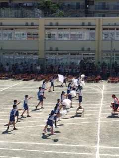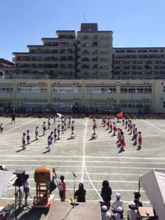 応援団が先頭に立ち、赤組白組力いっぱいのエールの交換。