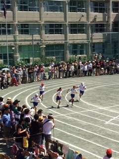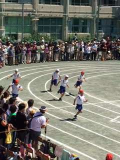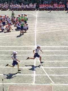 赤白それぞれの大声援を受けて5年生全力疾走です。