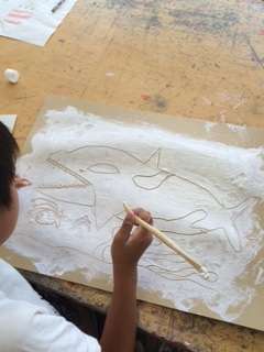 思い思いに深海の生物を描く子供たちの想像力にひたすら感心です。