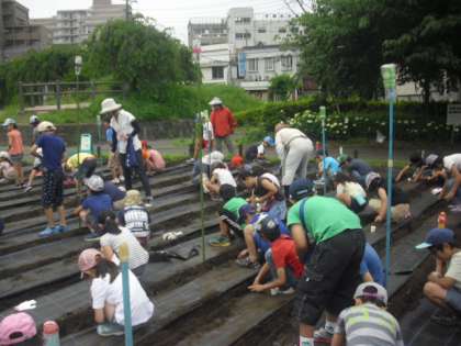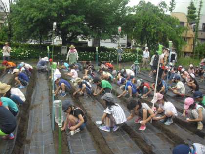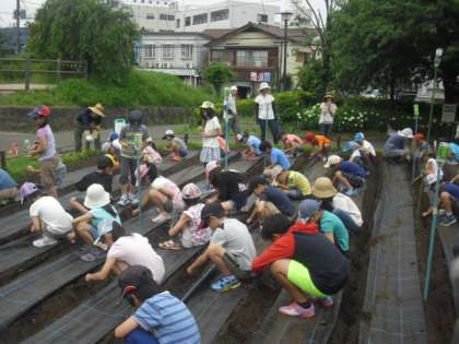 握りこぶしの間隔で一つ一つの種を丁寧に植えました。