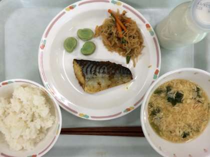 給食のお皿を鮮やかに飾るのはソラマメ!