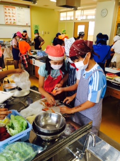 今日は、家庭科の調理実習でカラフルサラダを作りました。子供たちは、自分たちで材料の野菜を選び、ドレッシングも作りました。それぞれの野菜の茹で時間、切り方を班の友達と話しあって決めていきました。とれも彩りが綺麗なサラダを作ることができ、子供たちも満足そうでした。
