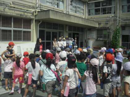 今日は1学期最後の花の丘活動がありました。3回目の移動ということもあり、少しずつ公園への移動も列を崩さず歩けるようになってきました。