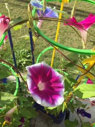 5月に種を植えたあさがおが、ついに花を咲かせました!