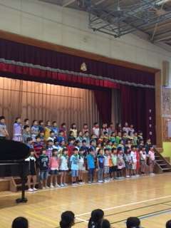 2年生の子供たちはバンダナを巻いて素敵な笑顔で『少年少女冒険隊』を元気に歌って踊ってくれました。