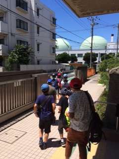 グループに分かれて、都内、区内巡りに出かけます 。暑いけど、それぞれのグループで下調べした東京巡り。楽しみですね。