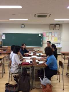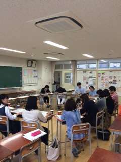 算数数学部会、英語部会、保健体育部会、社会部会など各教科部会に分かれて11月に行う学舎研究会の授業の検討中です。