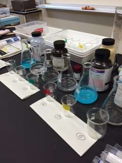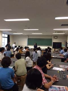 各教科部会の会議の後は、中学校の理科の先生が講師になって理科実験の研修会です。