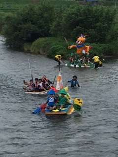 今日はデバンデスと有志の子供たちがアドベンチャーイン多摩川にチャレンジ。多摩川を手作りイカダでくだります。