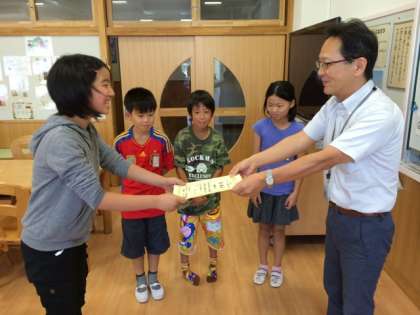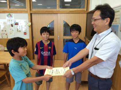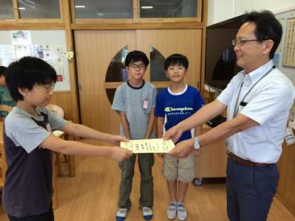 先日行われた『アドベンチャーイン多摩川いかだ下り大会』の表彰状をあらためて渡しました。