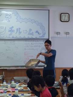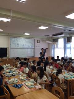 ランチルーム給食の3−2のみんなの中で今月がお誕生日の人にひとかけらプレゼント。