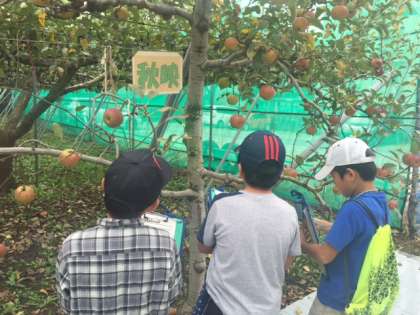 本年度最後のりんご園観察に来ました。りんごがたわわになっています。観察が終わったら1人3個ずつ摘み取り。お家で味わうのが、楽しみですね。