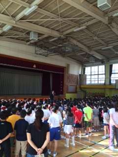 全校をリードする6年生、一生懸命お話を聞くみんな。
