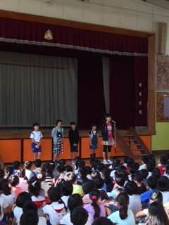 校長先生から連合運動会に向けて頑張っている6年生が、朝練を頑張って、さらに時間を守って、朝会に立派な態度で参加しているのが素晴らしいとお話があり、その後、6年生のスピーチがありました。
