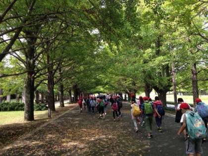 大きな渋滞もなく、現地に着きました。秋晴れの遠足日和最高です。公園の圧倒的な広さに子供たちの表情も自然に笑みがこぼれています。
