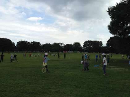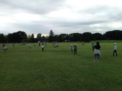 食後に遊んでいます。とにかく広いので、なにをやってもぶつかりません。