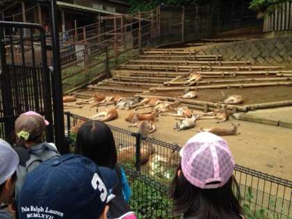 午後は園内を見学しながら昆虫生態園に向かいます。カンガルーはお疲れ気味でした。