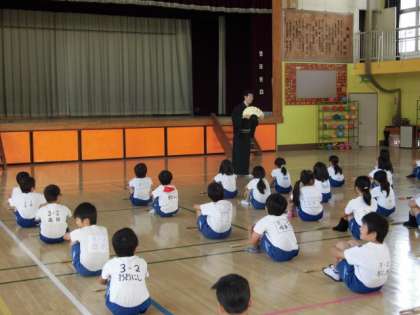 児童一人一人がお扇子を持って振り付けを覚えました。