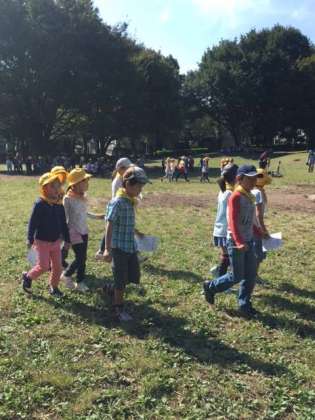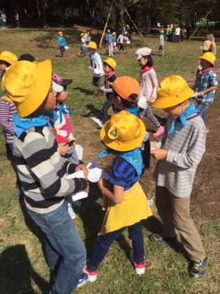 班のみんなと協力して、「きのみ」「とりのこえ」「どうぶつのおとしもの」など、見つけました!