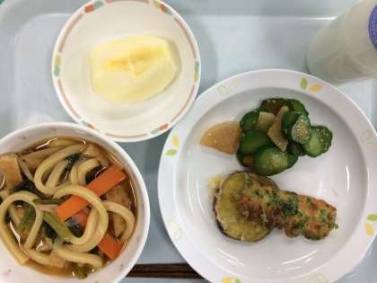 「先生、今日はきつねうどんだよね!楽しみ