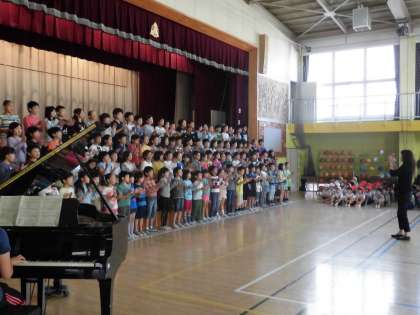 10月22日(木)に音楽朝会がありました。3年生は「気球に乗ってどこまでも」を発表しました。2年生の頃に比べると、ずいぶん美しく響く声が出せるようになったと感じました。