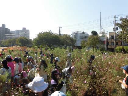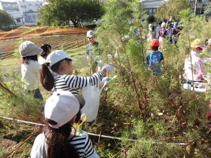 まずは、お気に入りの花をはさみで切りました。帰ってから飾るのが楽しみですね。その後、抜き取りの作業に入りました。やはりみんなで力を合わせると仕事が早いです!
