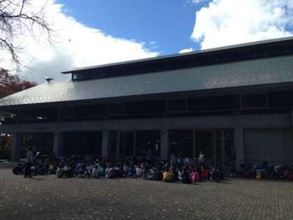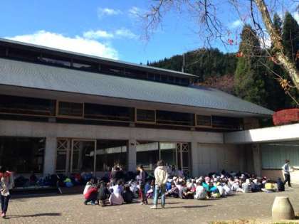 ふじやまビレジに着きました。開室式をしています。みんなで協力して、楽しい思い出、一生の思い出にしようと話しました。子供たちもうなづいてくれました。