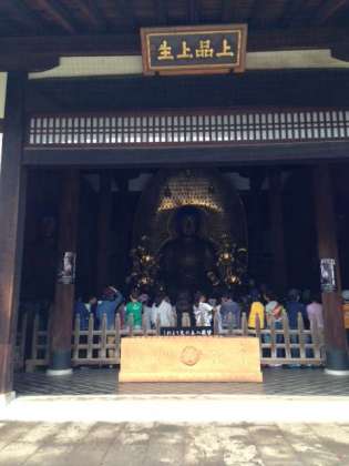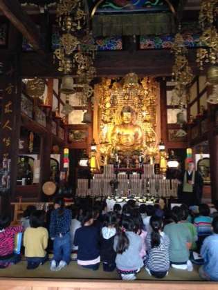 九品仏の中をお坊さまに丁寧な案内をしていただいています。御堂の中に入るときはきちんと靴を揃えました。