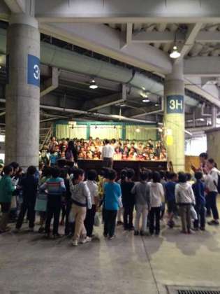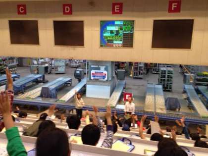 世田谷市場の見学。まず市場の説明を受けました。その後、花のセリ、野菜のセリの現場を見学しました。